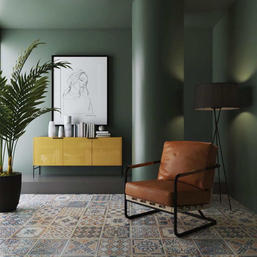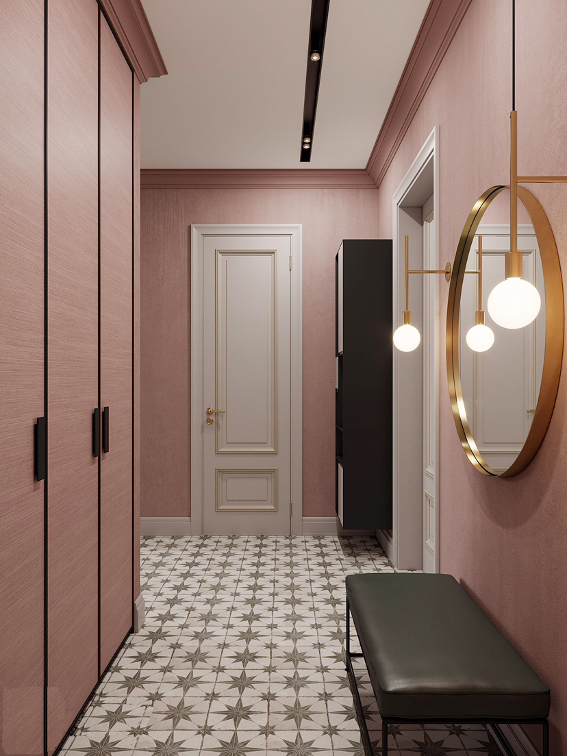 地面拼花使地面变得更为灵动,而不像传统地面设计一样的板正而无趣。玄关的地面拼花不仅起到了装饰的效果,同时使玄关区域更加鲜明,视觉效果也更加丰富。