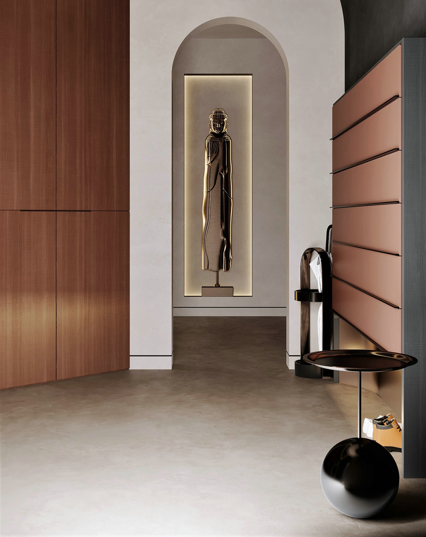 大户型相对来说,空间更充裕!玄关的意义也不再单单是作为收纳储藏等功能性的生活需求,更多是用以装饰和美化空间,同时也表达了主人的审美和品位。