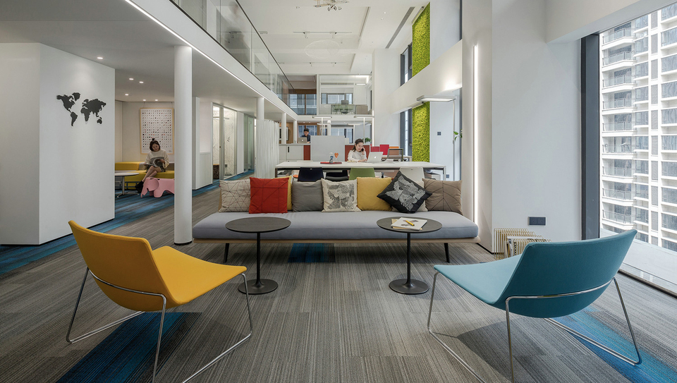 “每一次,每一个新空间,都是我们灵感和创造力的舞台。”对于设计师们而言,拥有一个舒适的工作环境有助于灵活思考。办公室分为二层结构,一层作为休闲、接待区域。从楼梯视角来看,同材质延伸,经过起承转合,高低变化,形成沙发休闲区,在简约和自然元素中,无缝而和谐的融合。