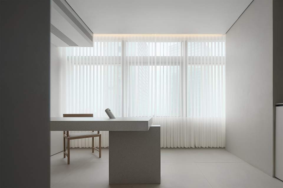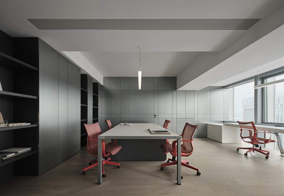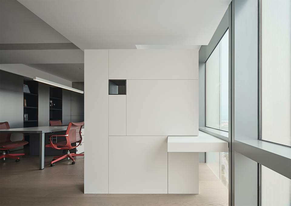 自然有形,却是无界的存在。水吧延续线条的灵动感,以岩板为主要材质,点缀提升整个水吧的层次感。走到最里面的正式洽谈区,动静相蕴,与空间意境相互呼应孕育出清新之风,给工作洽谈氛围间,赋予思维上的跃动性。
