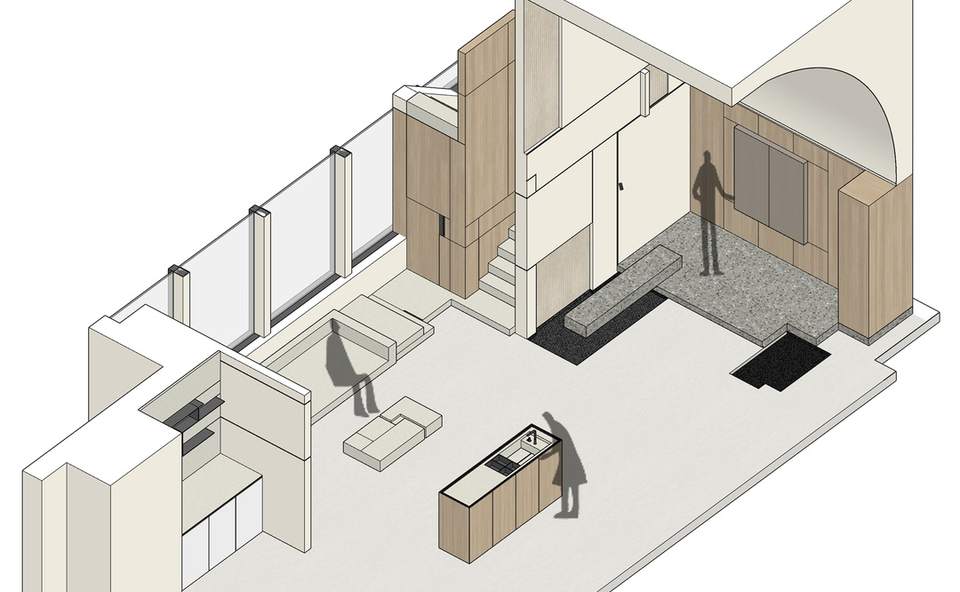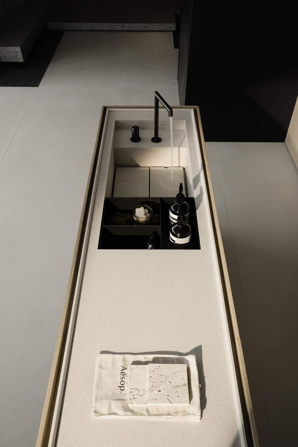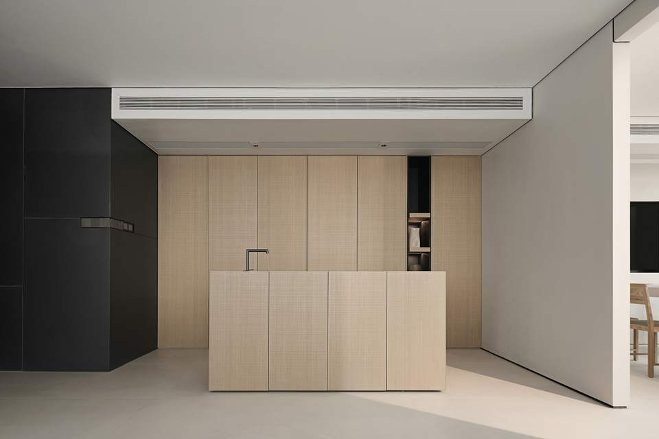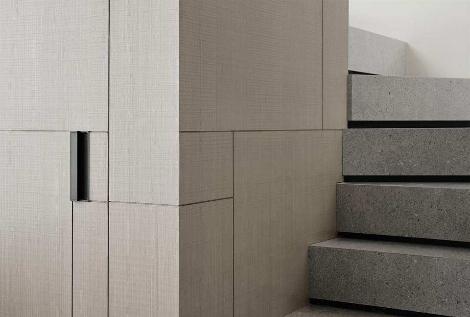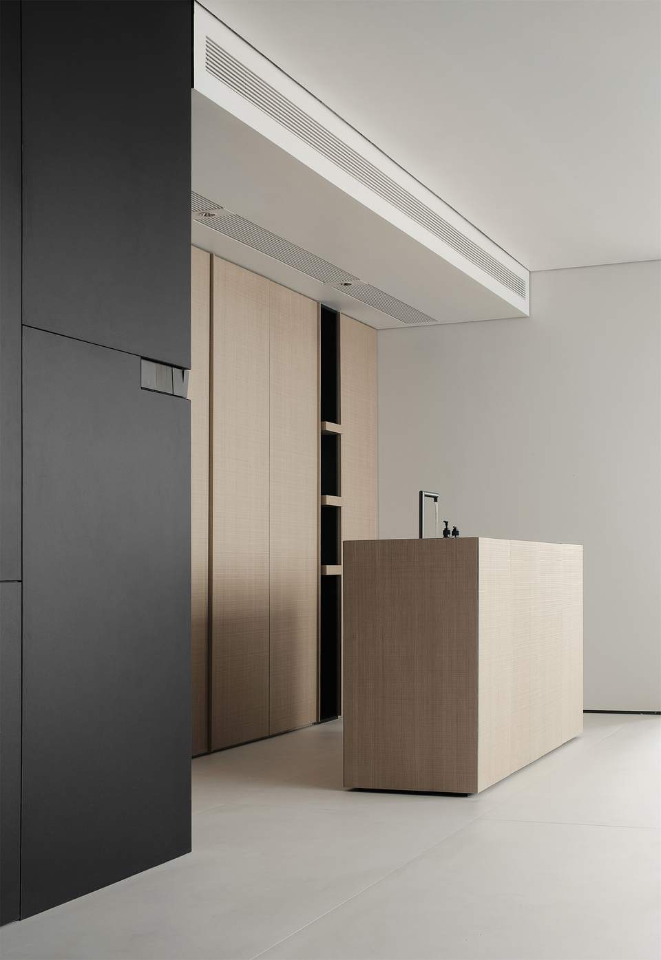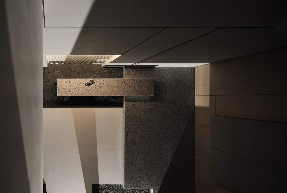 将如此温和的特性赋予其无穷的包容性,配合立体的抽槽面莱姆石以及顶面半弧形带来的感性,曲直相衬,与原木色,灰色水磨石这些自然的元素带来的舒适感,丰富的纹理感将继续延续,得以感性、纯真的表达。