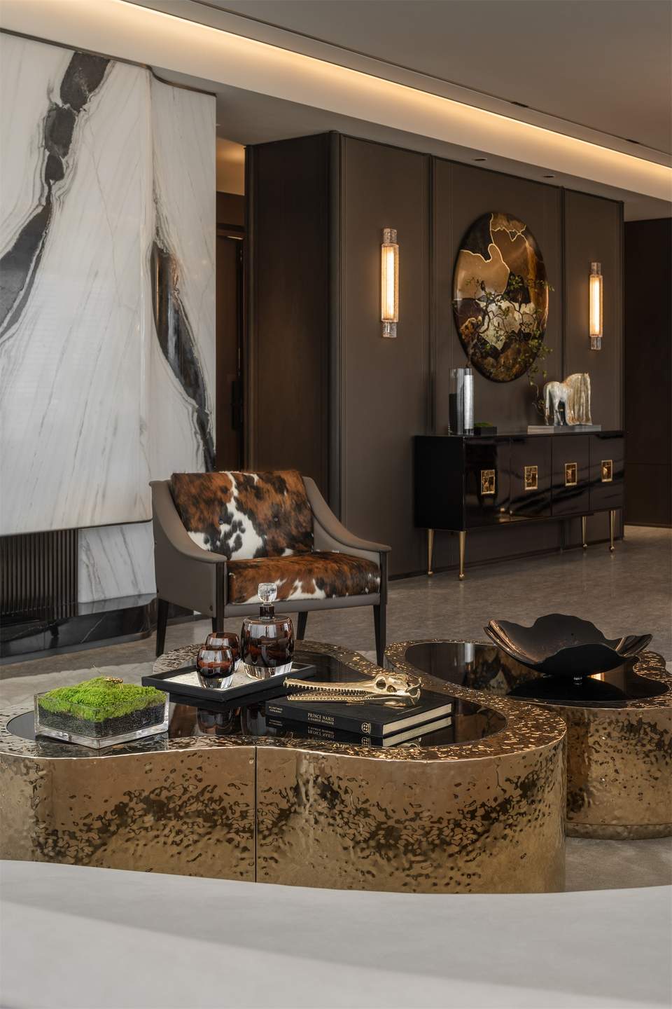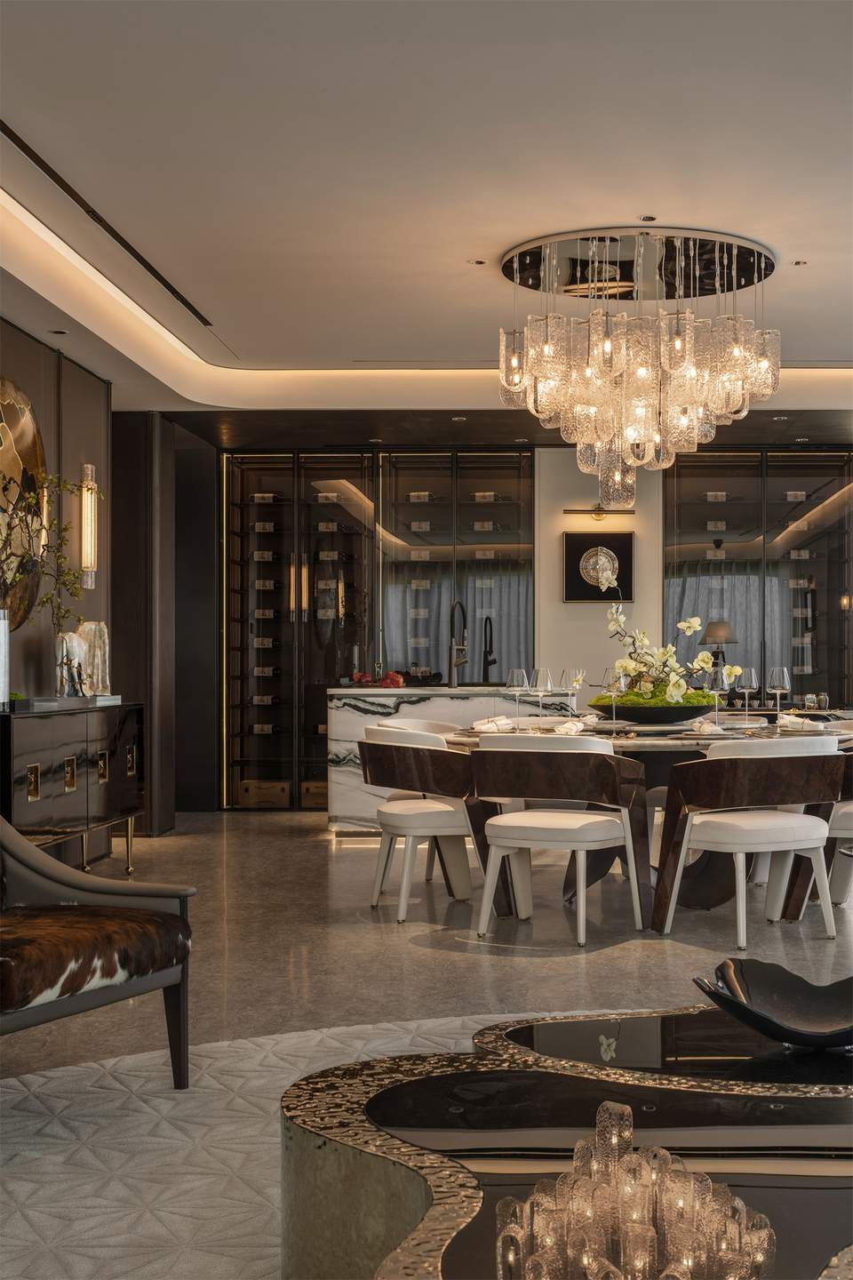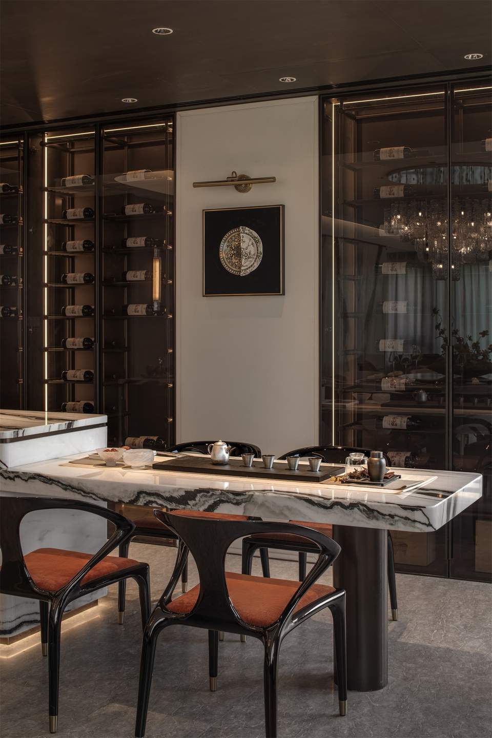佳宴必有美酒,吧台、酒柜等由酒延展的构件体现其自身具备的收藏与展示属性。