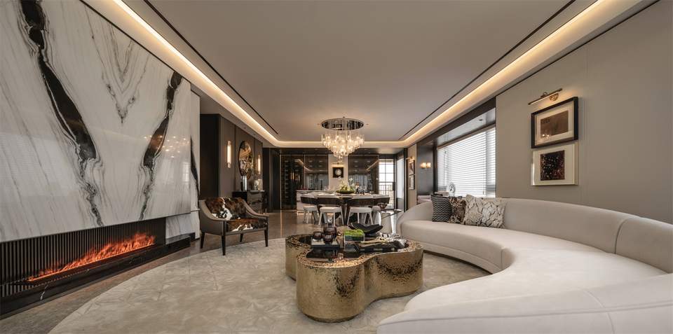 设计将整个动区化零为整,实现一个超级尺度+复合场景的生活场,在一个格局自由的开放性空间内同时呈现客餐厅、中西双厨、茶吧等多重复合空间。