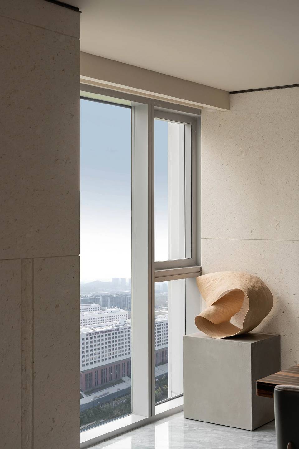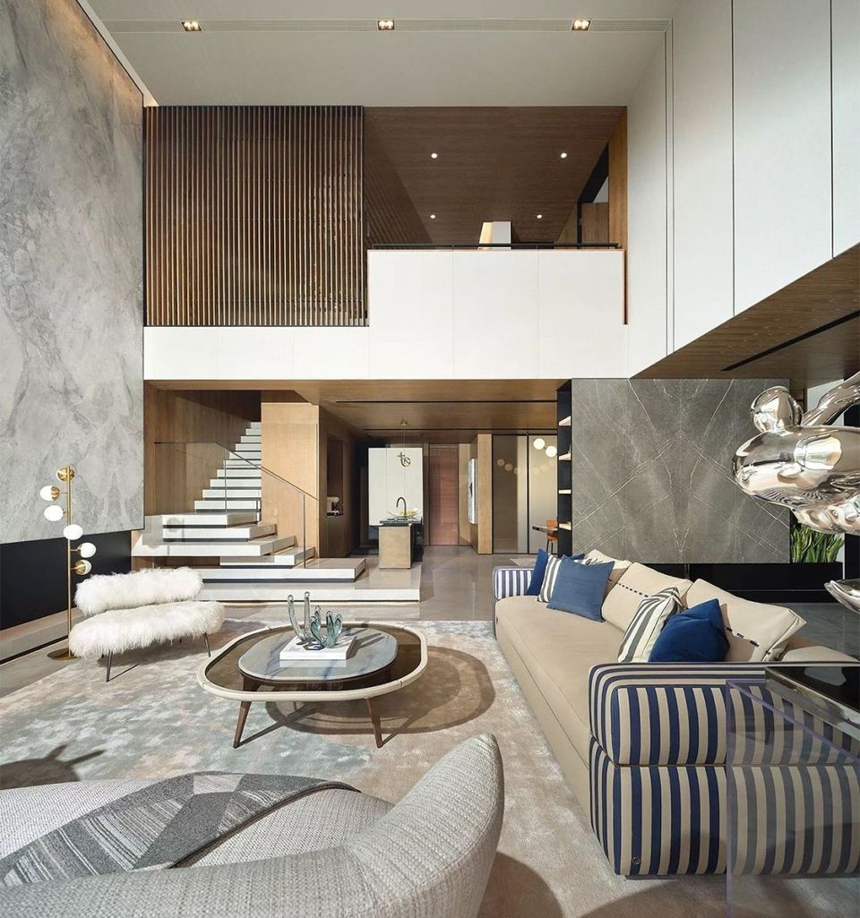 天然材质的磨砺与岁月的留痕,赋予空间独特的层次感与探索性。经过一条长廊,动线上的节奏悄然变化,让居所的动静分离达到一种更理想的平衡状态,不同维度上营造出空间上的延伸感。