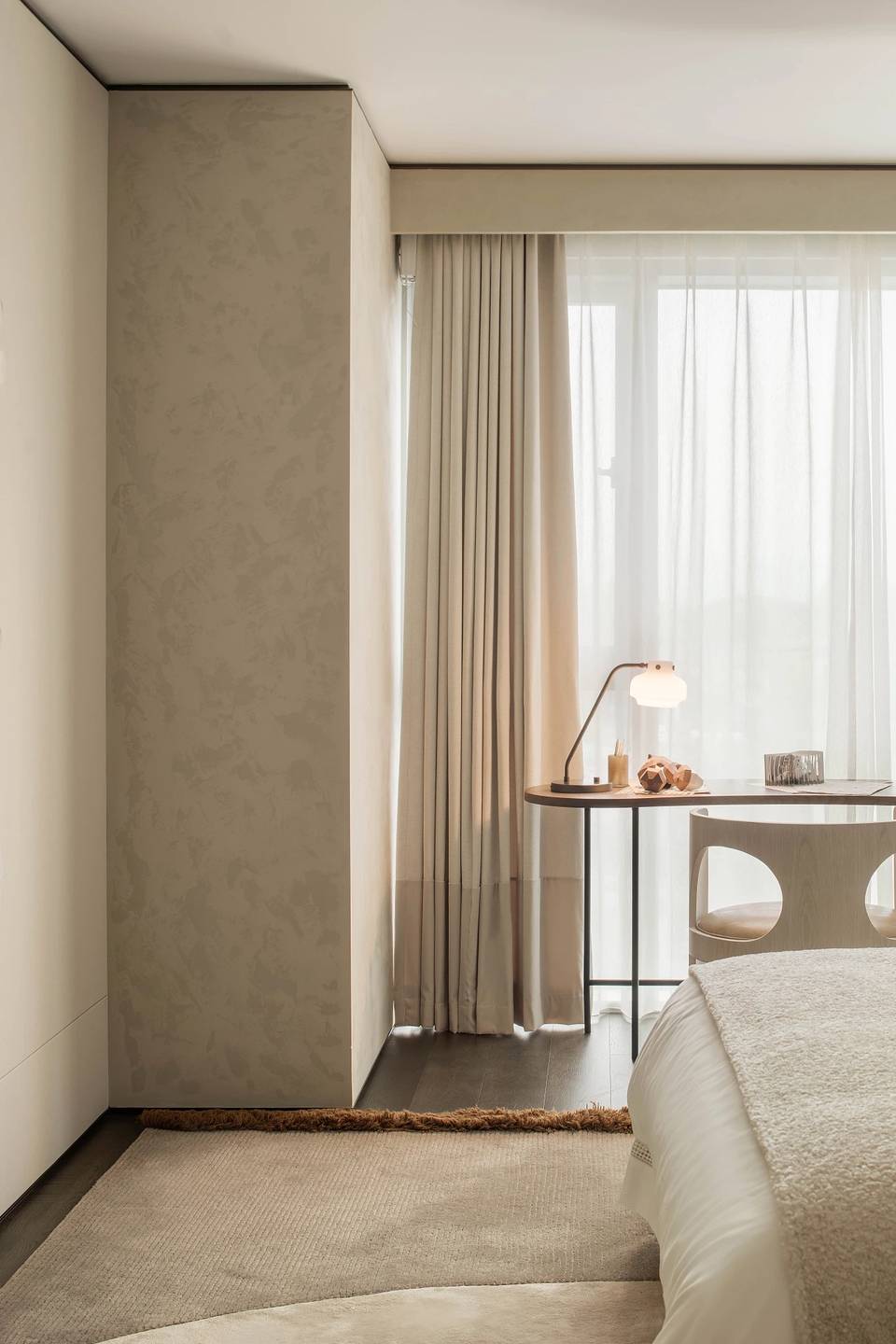 休息空间,被温润的材质所包裹,材质元素在空间中不断重复组合和变化。借由材质的运用,相互呼应,整体感贯穿于空间的始终。