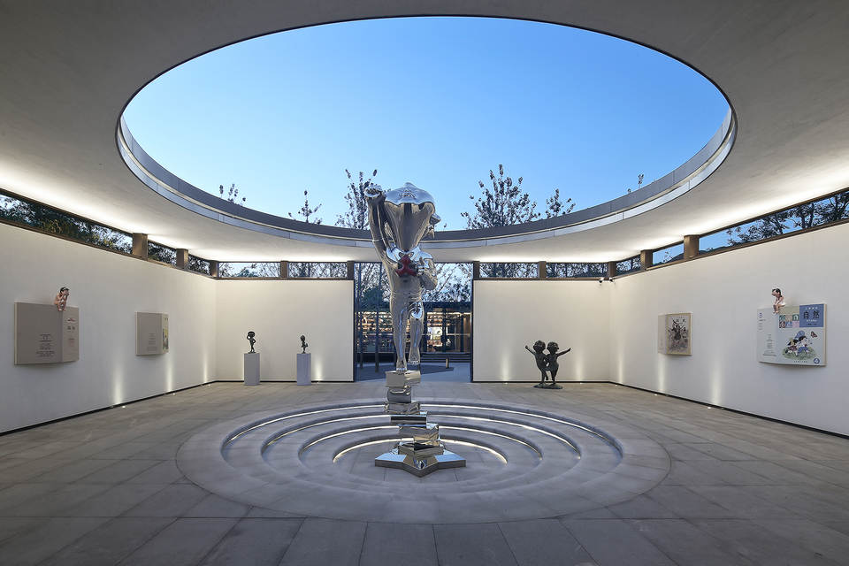 书院露天讲堂中心树立雕塑家吴梁焰先生“天天向上”的雕塑作品,具有十足趣味与欢乐,代表着鲜活向上的力量,同时勾起几代人共同回忆,传达出对中国的历史发展、社会现象以及人生价值成熟的观察与思考。