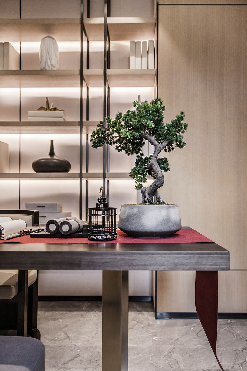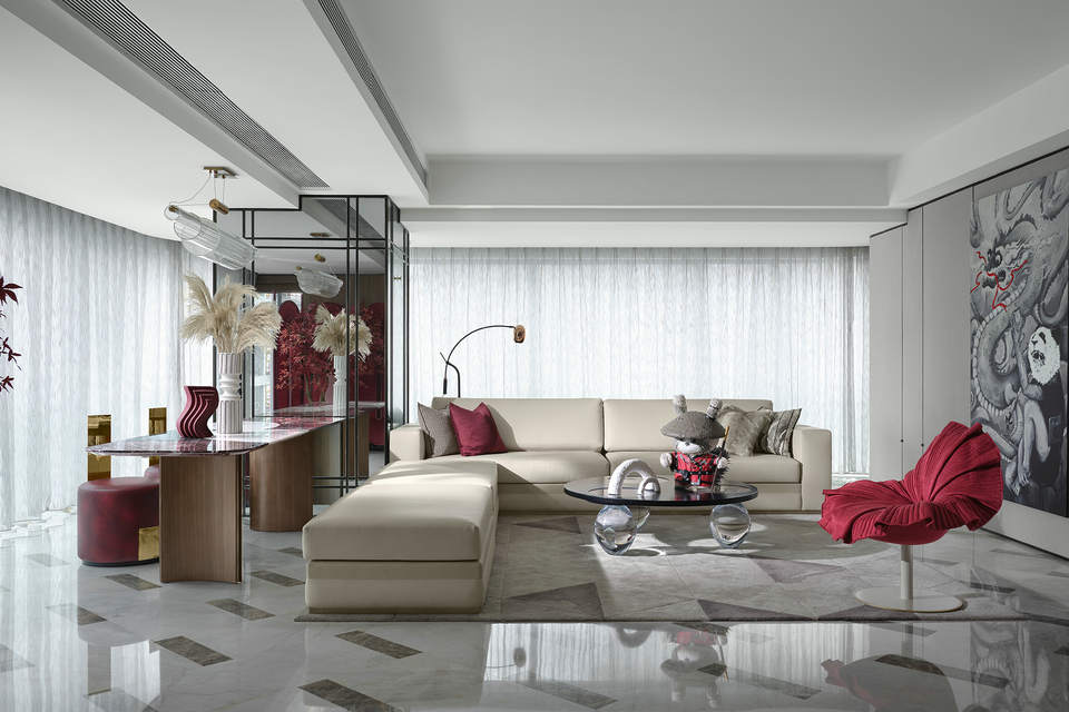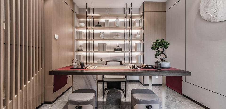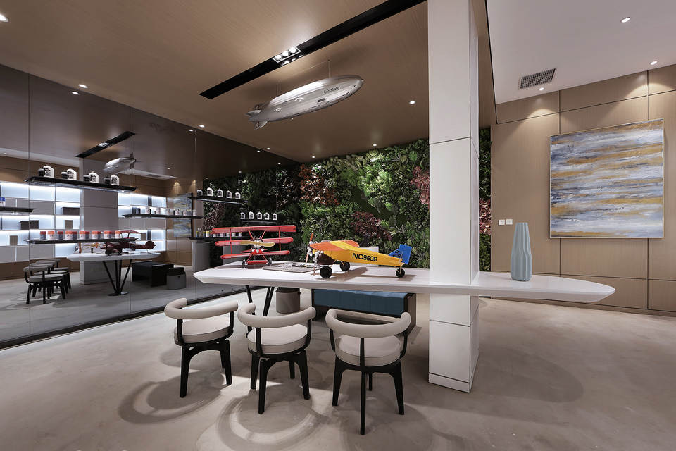 玻璃隔墙后是主人兴趣展示空间,闲暇时有一份自得其乐的爱好,心无旁骛、精益求精,沉醉于匠心独运是一种幸福。