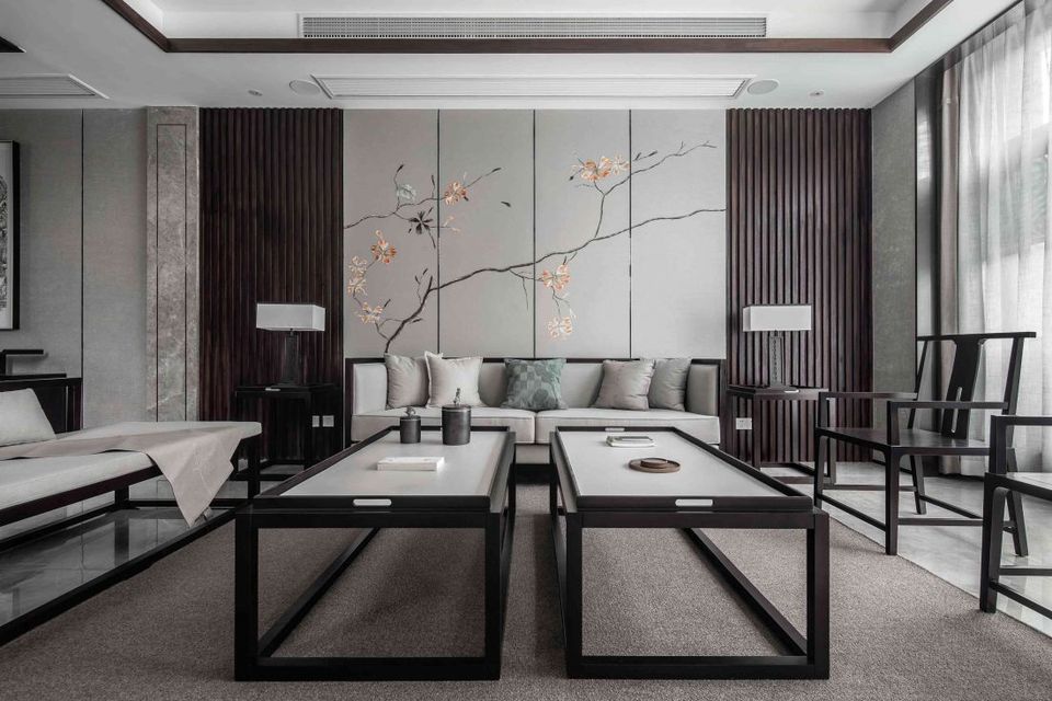 室内与院落的互动,使居住者充分享受到自然之气。古风与当代设计相结合,浓墨淡彩,形成古与今的对话感。