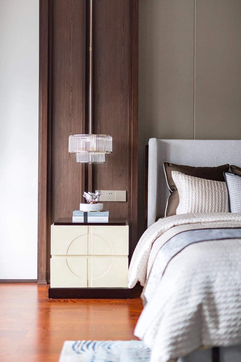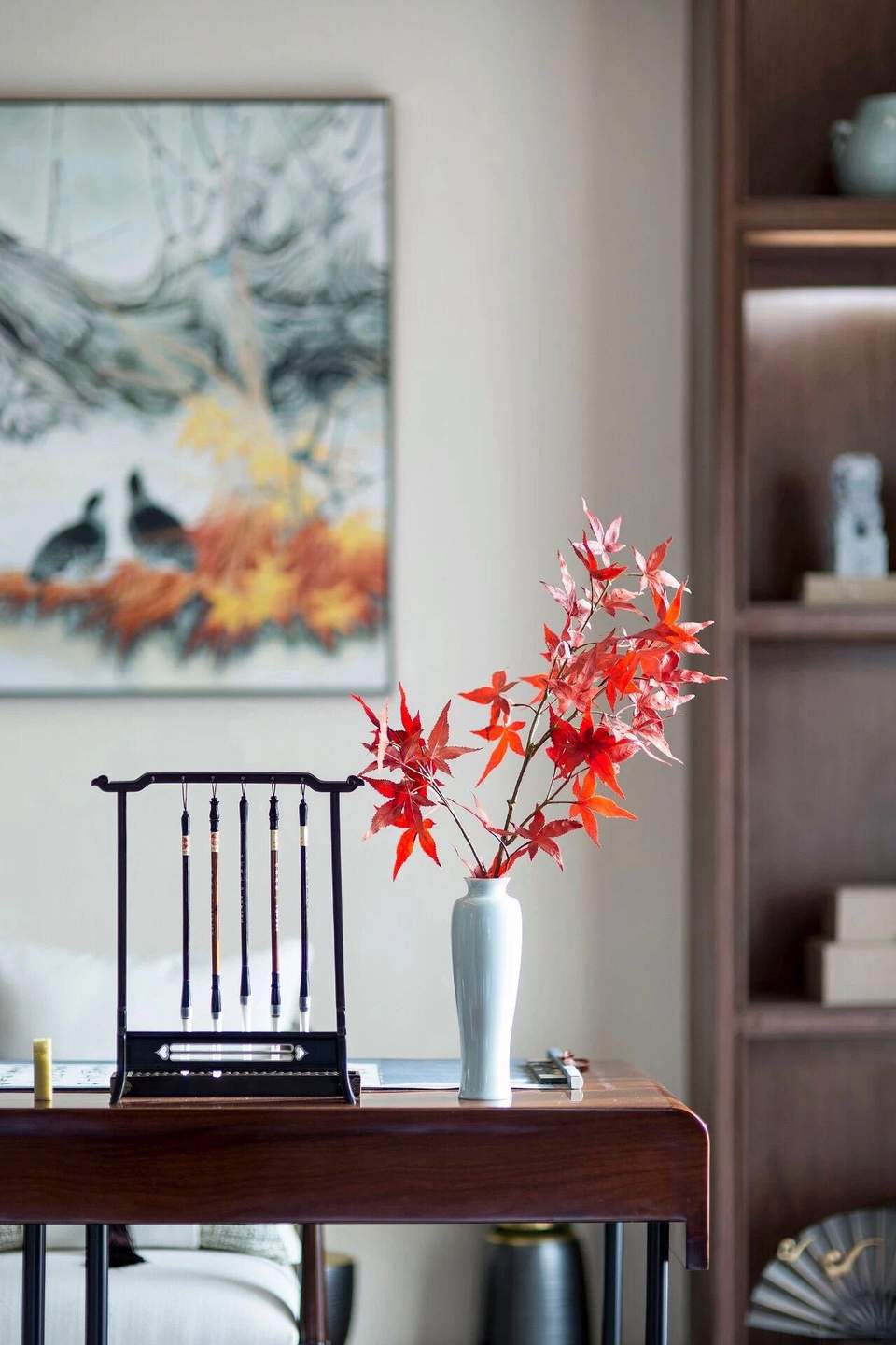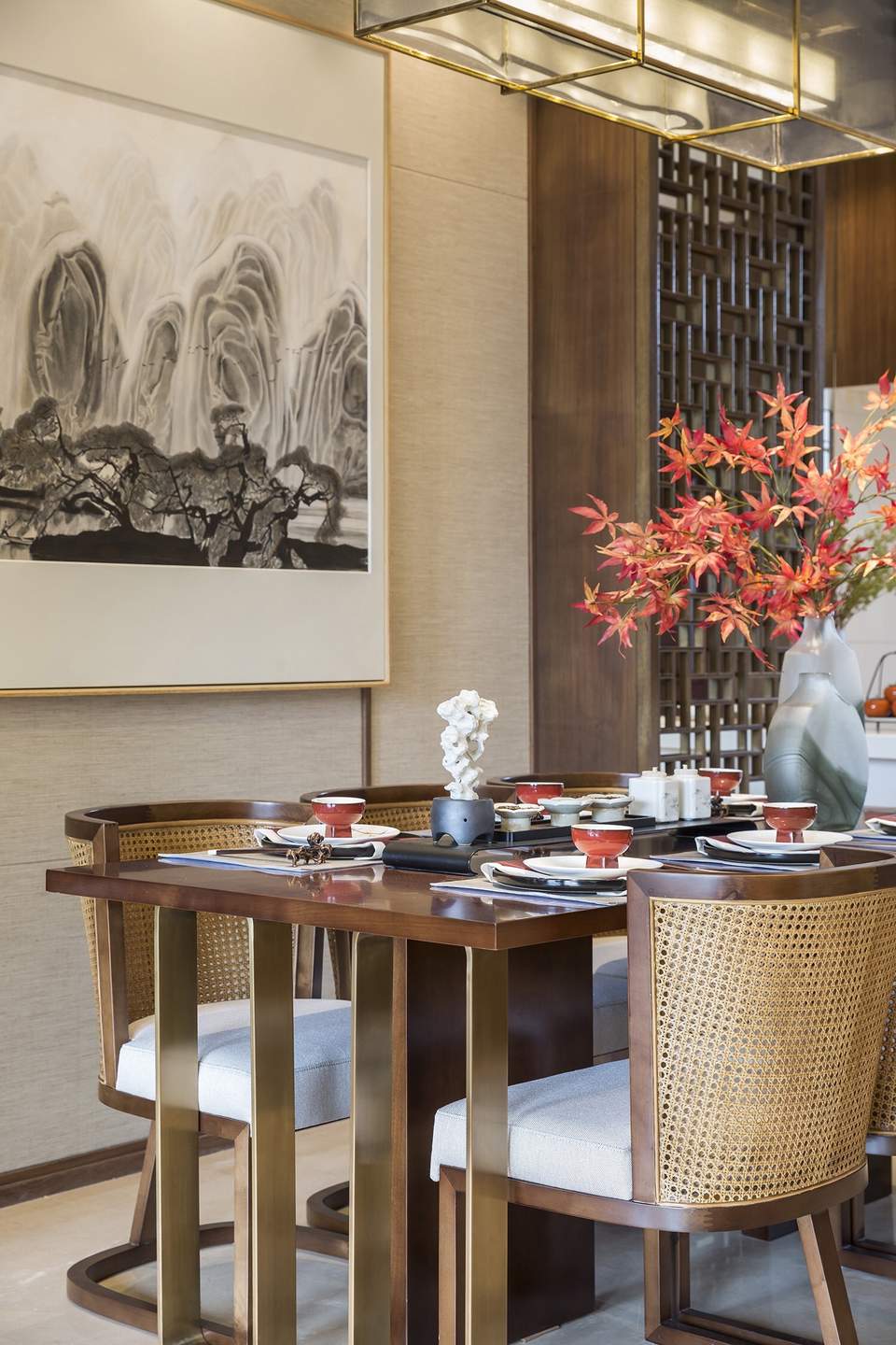 相比传统中式追求富丽堂皇、雕梁画栋的装饰效果,这样的设计相对简洁许多,干脆利落的线条配上简单的装饰元素,不仅突破了传统中式可能过于厚重的诟病,在选材上也更为丰富自由。