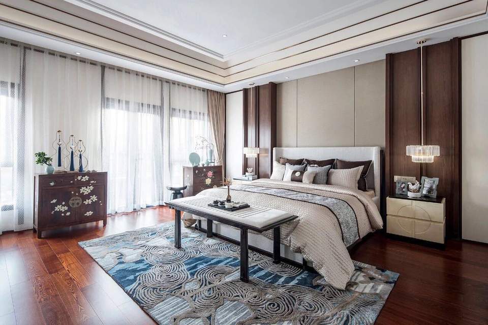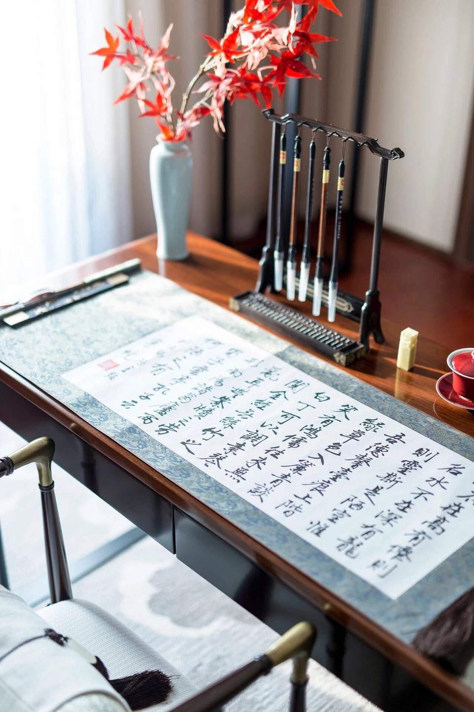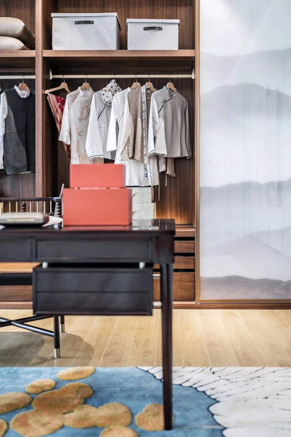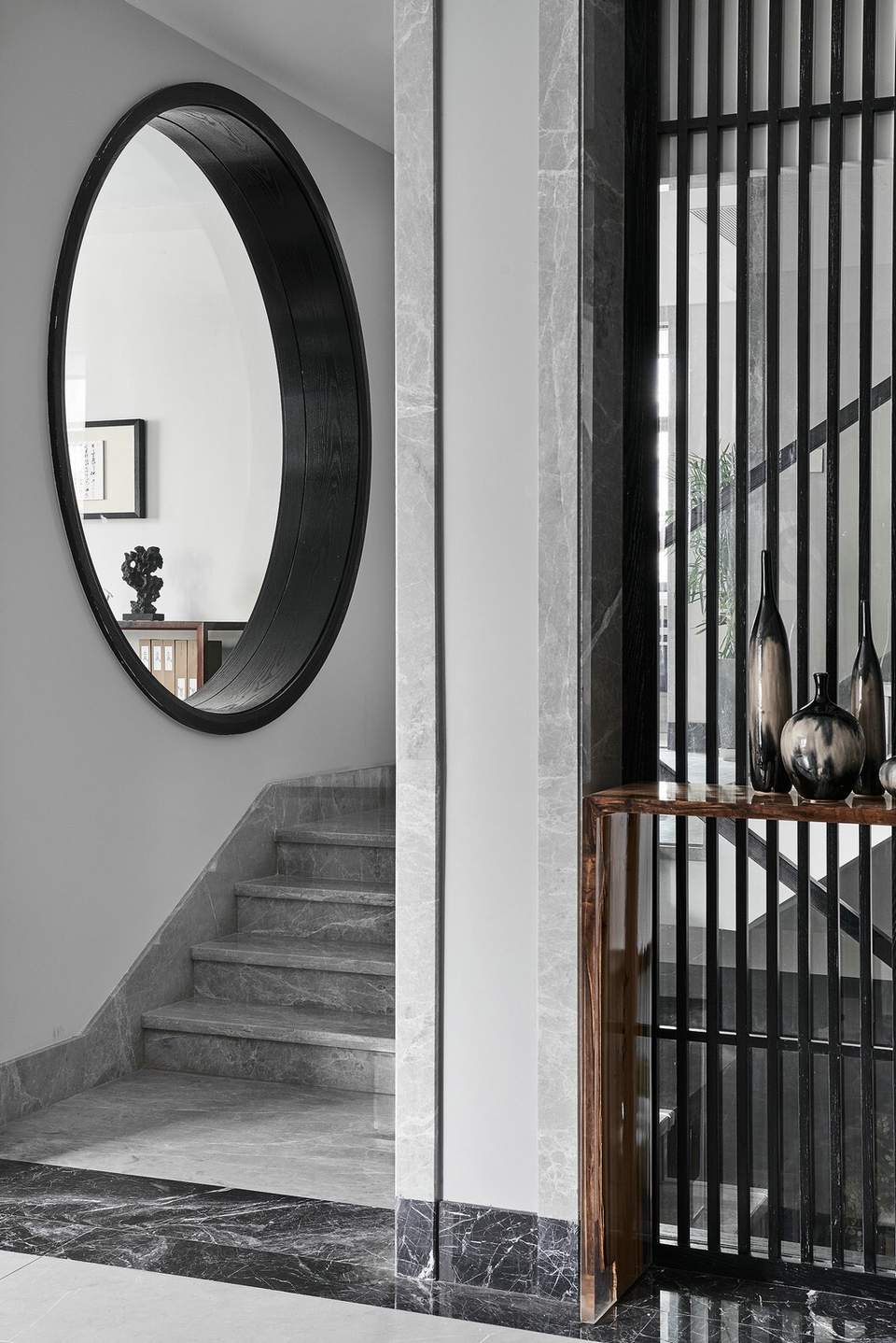 相比传统中式追求富丽堂皇、雕梁画栋的装饰效果,这样的设计相对简洁许多,干脆利落的线条配上简单的装饰元素,不仅突破了传统中式可能过于厚重的诟病,在选材上也更为丰富自由。