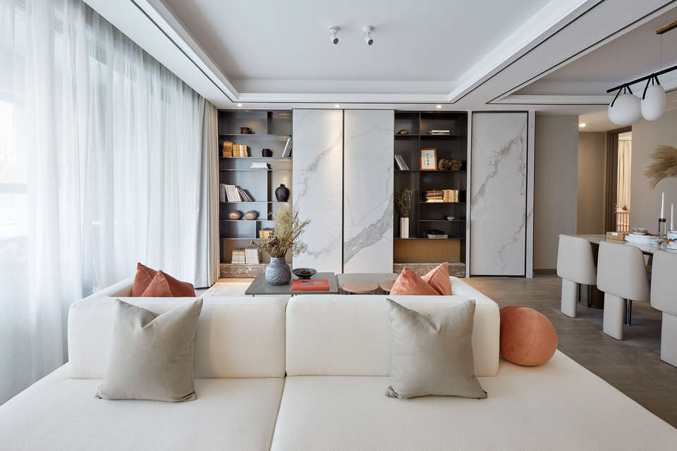 以现代之形续写东方之意 ,我们强调的是优雅而低调的东方式奢华 ,诉说高雅品位的生活方式,陈设不过于浮夸,纯粹的色彩搭配光影的变化,婉约别致。将现代语言与传统文化得以圆融合一,简约轻奢之美又注入了东方韵味的意境。