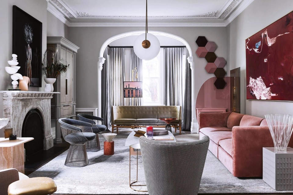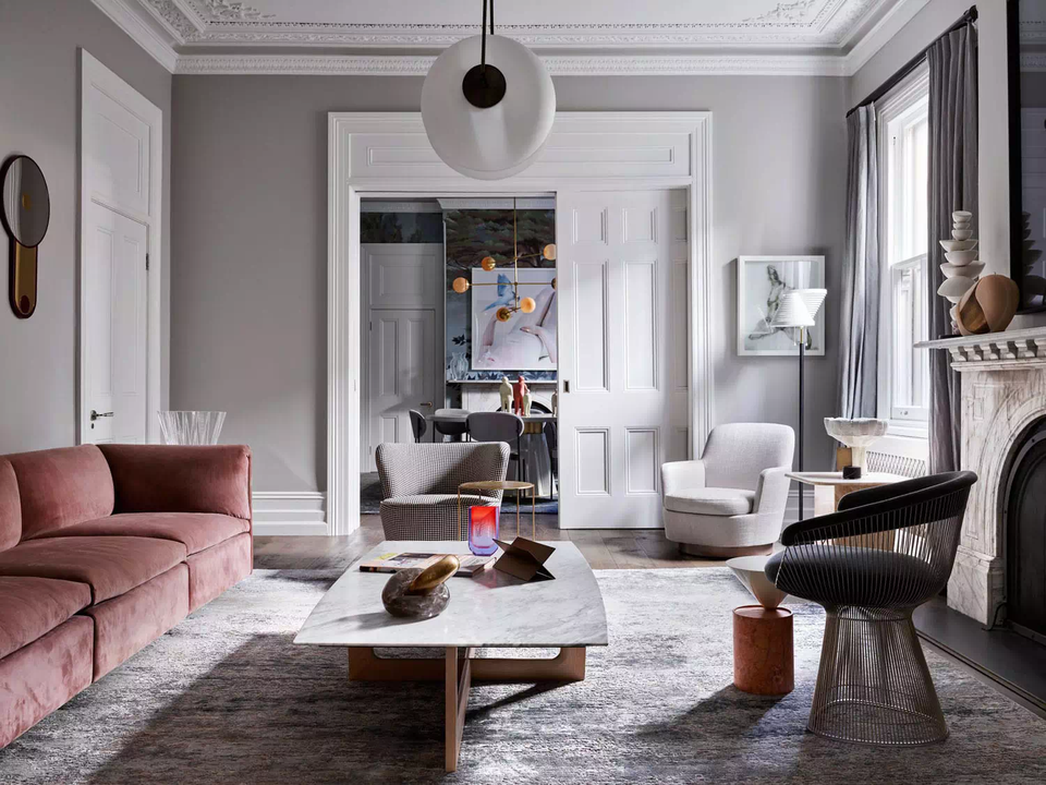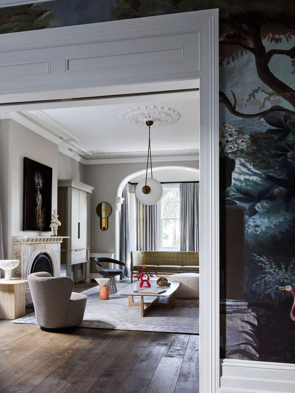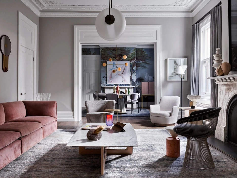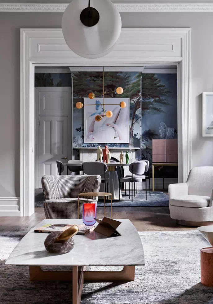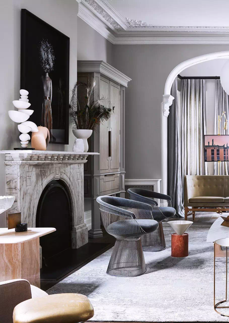 这个住宅的业主是澳大利亚企业家Alistair Champion与他的妻子Kate Champion,家里有二个年幼的孩子 Felix和 Lotte。始建于1900年,体现了新旧、阳刚与阴柔的对比。现代和传统元素通过色彩、壁画、纹理和材料的混合创造了从一个房间到另一个房间的视觉旅程,每个房间都有自己独特的特点。当代吊灯和艺术与天花和大理石壁炉上错综复杂的装饰形成对比。