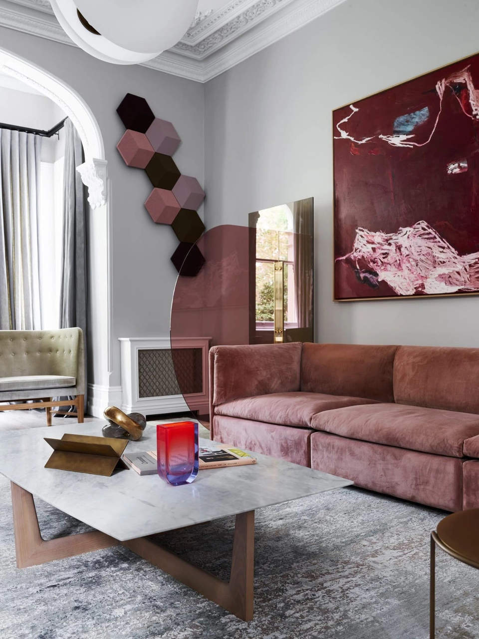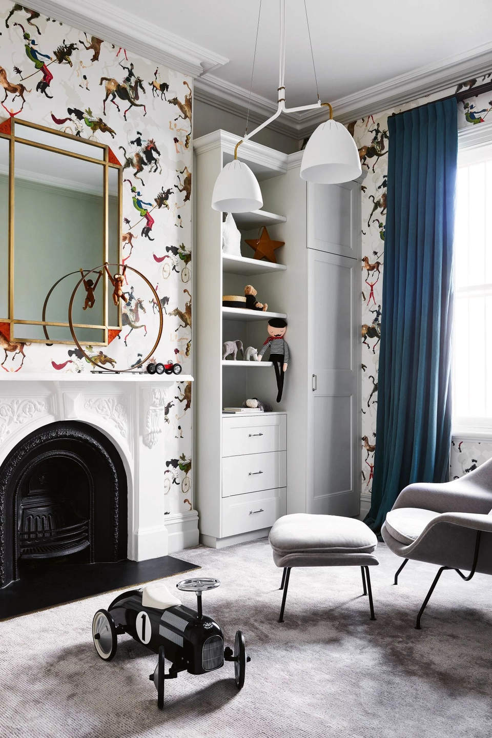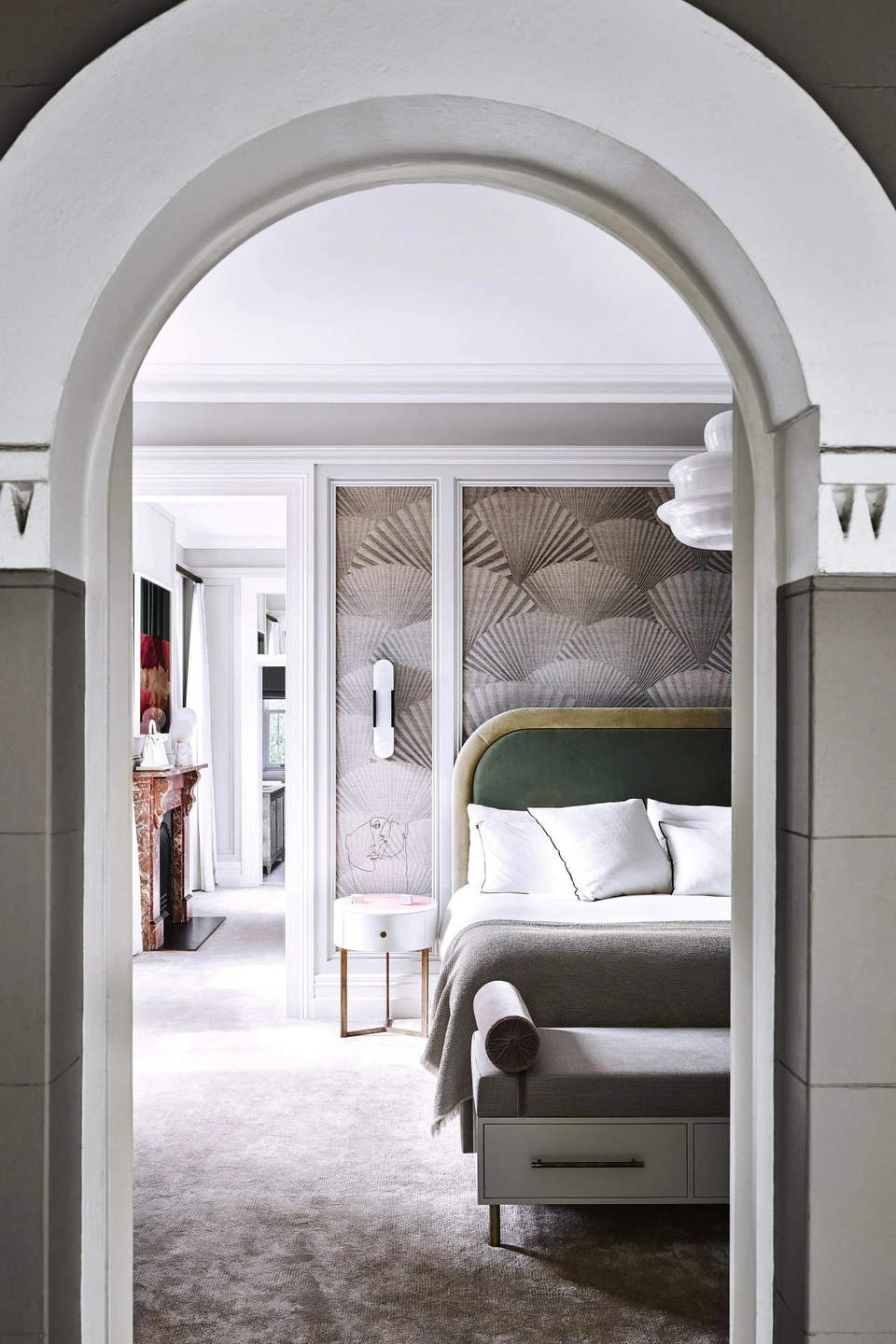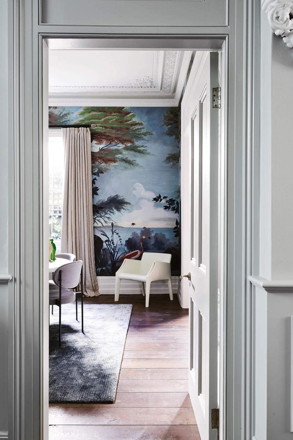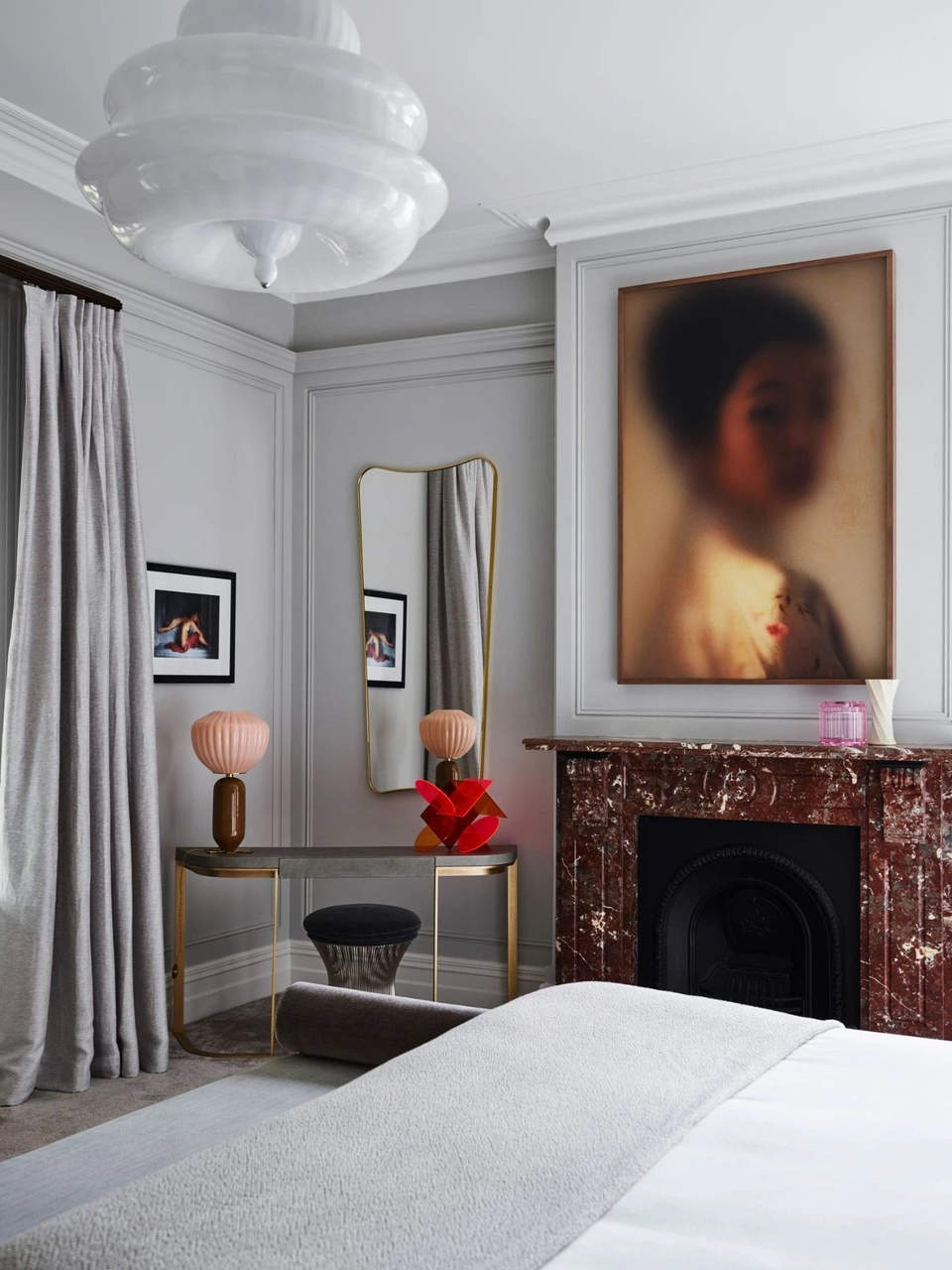 这个住宅的业主是澳大利亚企业家Alistair Champion与他的妻子Kate Champion,家里有二个年幼的孩子 Felix和 Lotte。始建于1900年,体现了新旧、阳刚与阴柔的对比。现代和传统元素通过色彩、壁画、纹理和材料的混合创造了从一个房间到另一个房间的视觉旅程,每个房间都有自己独特的特点。当代吊灯和艺术与天花和大理石壁炉上错综复杂的装饰形成对比。
